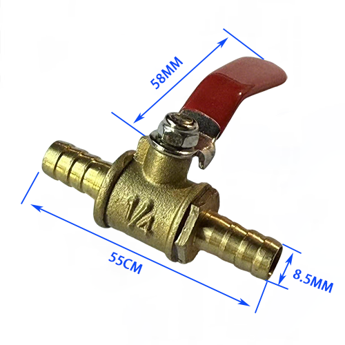 2. Modèle double pagode, le diamètre du connecteur aux deux extrémités est de 8,5 mm, la longueur totale du corps de la vanne est de 55 mm et la longueur de la poignée est de 58 mm. Vous pouvez insérer directement le tuyau de l'outil pneumatique sans assistance articulaire supplémentaire.
