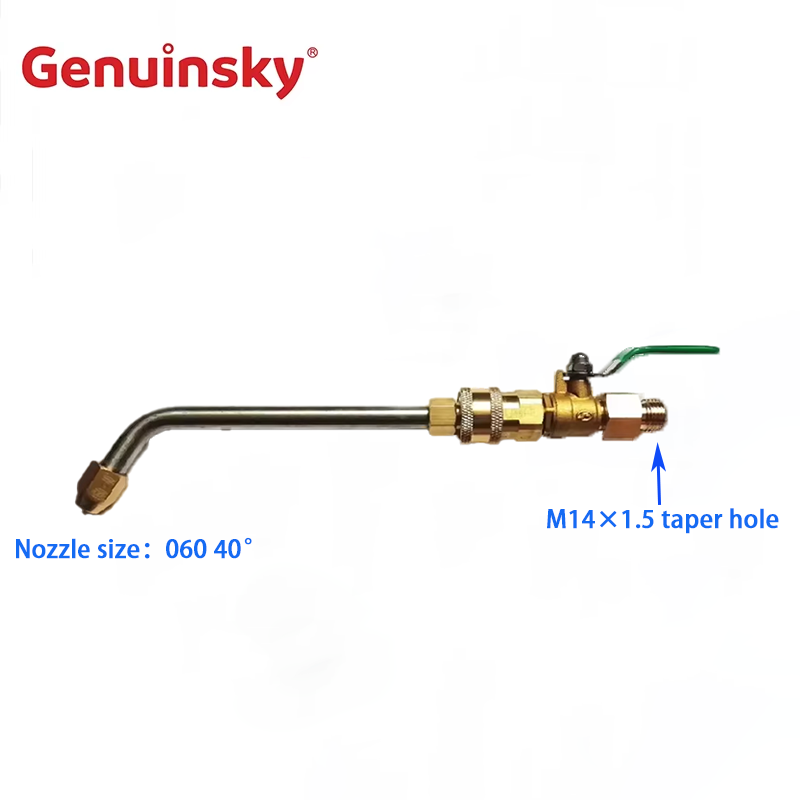 La buse pliée de la marque Geninsky avec une valve de 1/4 de pouce est dédiée au nettoyage de la condition de l'air, le produit lui-même plié à 60 degrés, outl et trou dia.060 40 degrés.