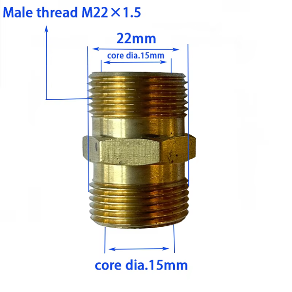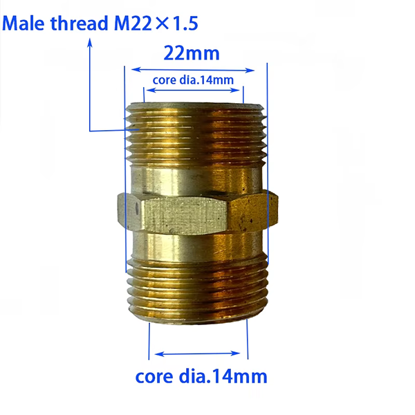 La conception de la taille de ce connecteur mâle en laiton M22 avec trou de 14/15 mm en option est très stricte. Une extrémité du produit est un filetage mâle M22 × 1,5, d'un diamètre de 22 mm, et il existe deux spécifications. L'ouverture peut être sélectionnée, l'une est de 14 mm de diamètre et l'autre est de 15 mm de diamètre. La spécification M22 × 1,5 est la norme générale de nombreux équipements, elle peut donc être largement adaptée à de nombreux équipements industriels. Le style de noyau dia.14mm convient aux nettoyeurs haute pression moyenne pression et à certains petits composants hydrauliques, etc. Les exigences de débit de ces équipements sont relativement modérées et le diamètre de l'ouverture répond aux exigences. Le style de noyau dia.15mm convient aux équipements de nettoyage haute pression à grande cylindrée ou aux scénarios de pipelines de fluides mécaniques à grande échelle. Il existe une demande pour une transmission à grand débit dans ces domaines, afin que l'ouverture puisse répondre aux besoins. Le matériau du produit lui-même est du laiton. L’avantage exceptionnel du laiton est sa résistance à la corrosion. Dans l'environnement de travail du produit, celui-ci doit souvent être exposé pendant une longue période à des produits chimiques tels que l'eau, l'huile ou les détergents. Il est facile de réagir dans un environnement de travail humide et complexe. Le laiton peut rester longtemps stable dans cet environnement pour éviter la corrosion et la rouille. Le risque de fuite. Dans le même temps, le laiton présente également les caractéristiques de haute résistance, qui peut résister aux chocs de pression lors de la transmission à haute tension, et n'est pas facile à casser et à fissurer lors des travaux de nettoyage à haute pression.