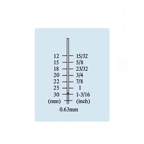 La taille de l'ongle ou de la broche pour MP630A Air Micro Pinner est petite et mince, taille 12-30 mm (15/32 à 1-3 / 16 pouces), GA23, DIA. 0,63 mm.
