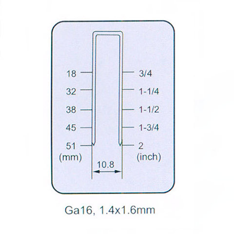 N851 ANSTAUPLE AIR CRONK est des pistolets à ongles à air lourd avec grand ongle GA16, 1,6 mmx1,4 mm, distance d'épaule 10,8 mm, la hauteur des ongles peut être de 18 mm, 32 mm, 38 mm, 45 mm, 51 mm (3/4, 1-1 / 4, 1- 1/2, 1-3 / 4, 2 pouces).