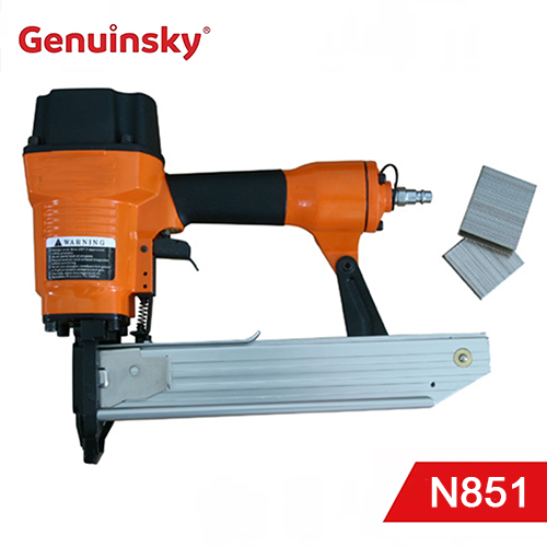 N851 Air Crown Astafler appartient à l'agrafeuse de la couronne de qualité industrielle avec un grand corps et des grosses agrafes. Il est utilisé pour fixer des clous en forme de U ou des clous de porte à la surface des matériaux à travers des dispositifs pneumatiques tels que les compresseurs d'air.