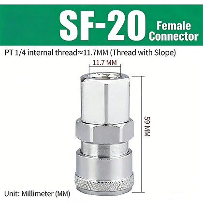 1. SF-20. filetage du tuyau 1/4, le diamètre de la partie filetée est d'environ 11,7 mm et la longueur totale du produit est de 59 mm.