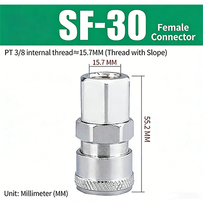 Les raccords rapides de type C de la série PF-SF avec filetage JIS PT ont une structure à bouchon rapide de type C. Les têtes mâles et femelles peuvent être assorties à volonté, et elles peuvent être branchées et connectées, ce qui est très pratique. Le joint adopte un traitement de galvanoplastie de surface, avec un noyau interne en cuivre, qui est non seulement résistant à la corrosion, mais également à l'usure, ce qui améliore la durabilité du joint et prolonge la durée de vie.