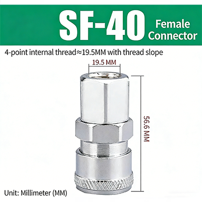 3. SF-40. Filetage de tuyau britannique G1/2", le diamètre de la partie filetée est d'environ 19,5 mm et la longueur totale du produit est de 56,9 mm.
