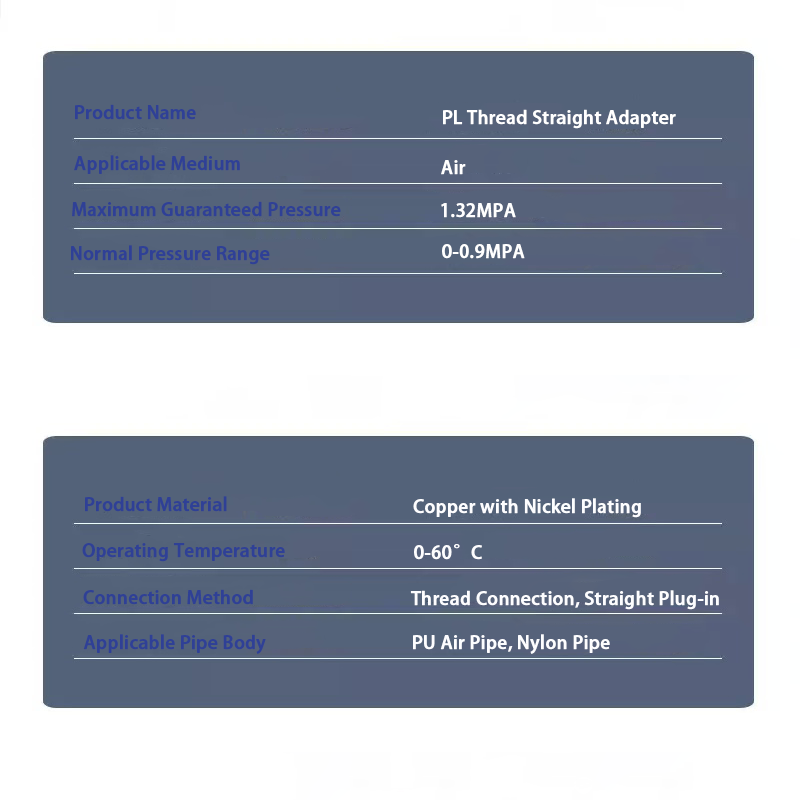 L'adaptateur droit à filetage PL et le tube peuvent même tourner librement à 360° après l'installation, ce qui signifie qu'il peut briser les limites de la fixation d'angle de joint traditionnelle. Il peut s'adapter à la tendance complexe du pipeline et les scénarios applicables du produit sont plus étendus. En même temps, le produit a la tolérance nécessaire pour s'adapter à différents scénarios. Par exemple, il peut également maintenir des performances stables dans la chaîne de production à haute température, car la plage de tolérance du produit lui-même se situe dans la plage de température de 0 à 60 °C. De plus, la pression maximale garantie peut atteindre 1,32 MPa et la plage de pression de service normale est de 0 à 0,9 MPa, ce qui peut couvrir entièrement le fonctionnement stable des équipements nécessitant des conditions de travail à haute pression tels que les outils pneumatiques et les cylindres automatisés.