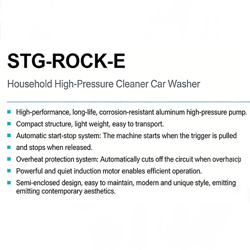 Le nettoyeur haute pression portable STG-ROCK-E de Genuinsky est un outil de nettoyage portable, durable et sûr. Il peut être d'une grande aide dans les scènes quotidiennes de nettoyage de la maison, les scènes de nettoyage de voiture et les scènes extérieures.