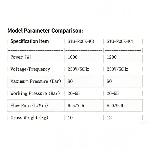 Tout d’abord, comparez certains paramètres de performances du K3 et du K4. Les deux modèles sont équipés de pompes haute pression en alliage d'aluminium. Les avantages de ce matériau sont la résistance à la corrosion, la durabilité et les hautes performances. En même temps, ils disposent tous deux de moteurs à induction à faible bruit. La différence est que la puissance du K3 est de 1 000 W et celle du K4 de 1 200 W, ce qui est faible tout en fonctionnant efficacement. , il n'est pas facile de provoquer des conflits de voisinage dans les scénarios d'utilisation domestique. La tension/fréquence des deux modèles est de 230 V/50 Hz, la pression maximale est de 80 bars et la pression de fonctionnement peut atteindre 20 à 55 bars. La différence est que le débit du modèle K3 est de 6,5/7,5 L/Min et le débit du modèle K4 est de 8,0/9,9 L/Min.
